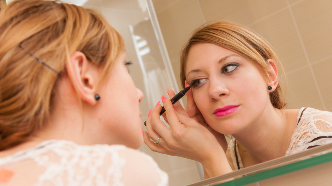 A WOMAN preparing for a night out has entered the third day of applying and redoing her winged eyeliner.