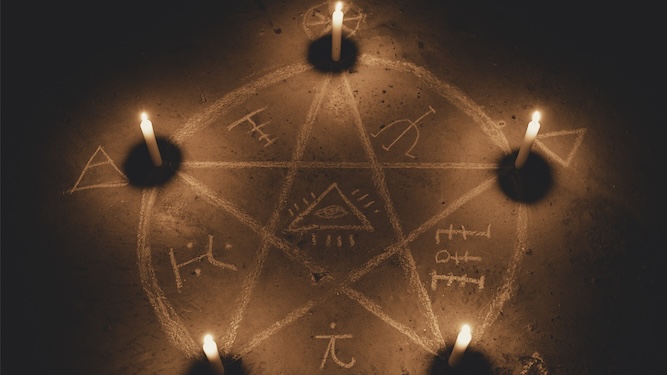 Mandelson detained in circle of chalk inscriptions and chicken blood